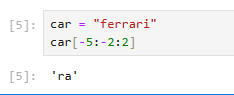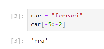 For example, below, we wanted to slice the "rra" seciton from the "Ferrari" value.