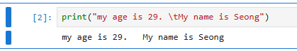 Since the "\t" character is used after the first sentence, the second sentence starts with four spaces in the output.