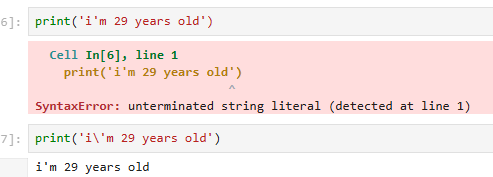 We used the backslash mark because we wanted Python not to see the quotation mark in the next line of code, so we got an error-free output.