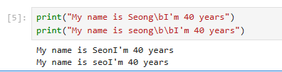 Since the "\b" character is used after the first sentence, the last letter of the second sentence is deleted in the output.