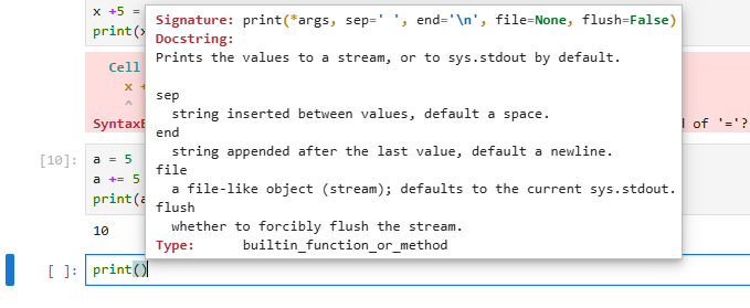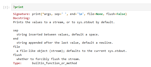 You can also perform the same operation by putting a question mark in the code cell and typing the function name.