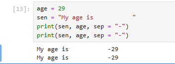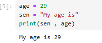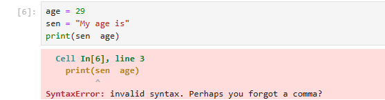 If we write without a comma between the values in the print fucntion, we will get an error.