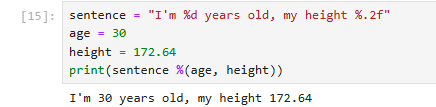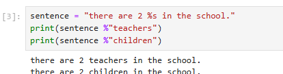 If we want to see a string value anonymously anywhere in a string expression, we need to use %s in the first step.