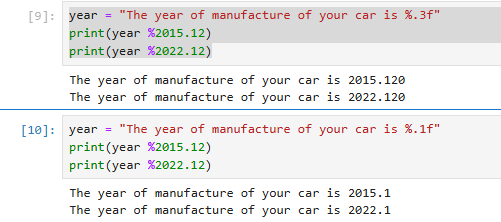 If we wnated to use a flaot value anonymously anywhere in a string expression, we need to use %f in the first step.