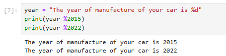 If we wnated to use a integer value anonymously anywhere in a string expression, we need to use %d in the first step.