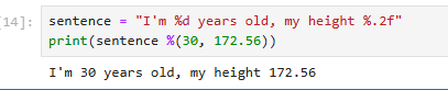 If we want to see a string value anonymously anywhere in a string expression, we need to use %s in the first step.