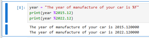 If we wnated to use a flaot value anonymously anywhere in a string expression, we need to use %f in the first step.