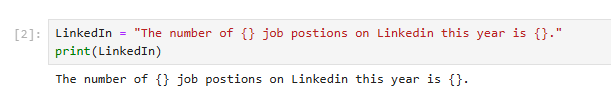 This method indicates the places we want to change on a sting with curly braces.