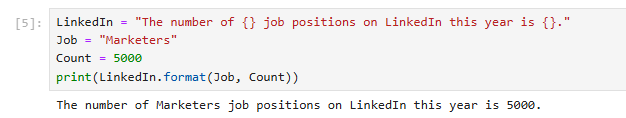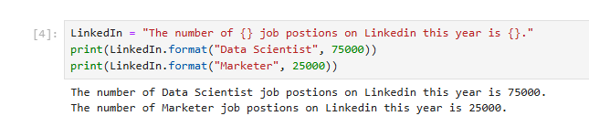 For example, there are two print functions below. Formatting was done according to its values and the string expression we wanted to come as output.