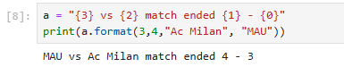 We can put these index numbers in curly braces in the string so that the output is as we want.